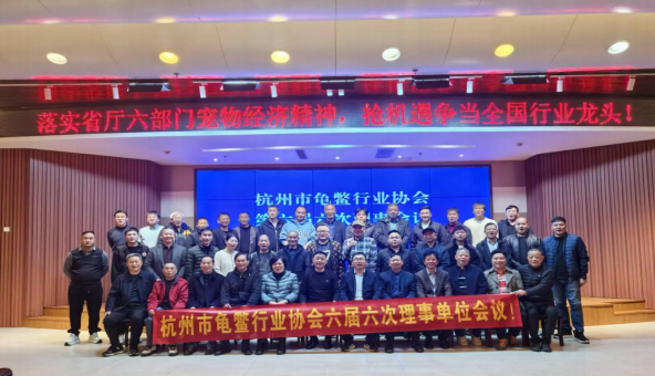 12 月 3 日,杭州市龟鳖行业协会举行第六届六次理事会议在浙江省水产技术推广总站举行。来自杭州及周边地区的四十多位协会理事和技术专家参加会议。会议重点传达学习了浙江省农业农村厅等六部门《关于促进宠物经济发展的意见》和浙江省农业农村厅《浙江土特产·中华鳖全链发展优质优价培育工程实施方案(2025—2027年)》二个文件。回顾总结了协会 2025 年工作,分析探讨了龟鳖市场行情及发展趋势。